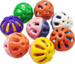 این توپ‌های پلاستیکی رنگی، به‌خاطر طراحی شبکه‌ای و وجود زنگوله داخلشان، هنگام حرکت صدای ملایمی تولید می‌کنند که توجه حیوان را جلب کرده و او را به بازی بیشتر ترغیب می‌کند.