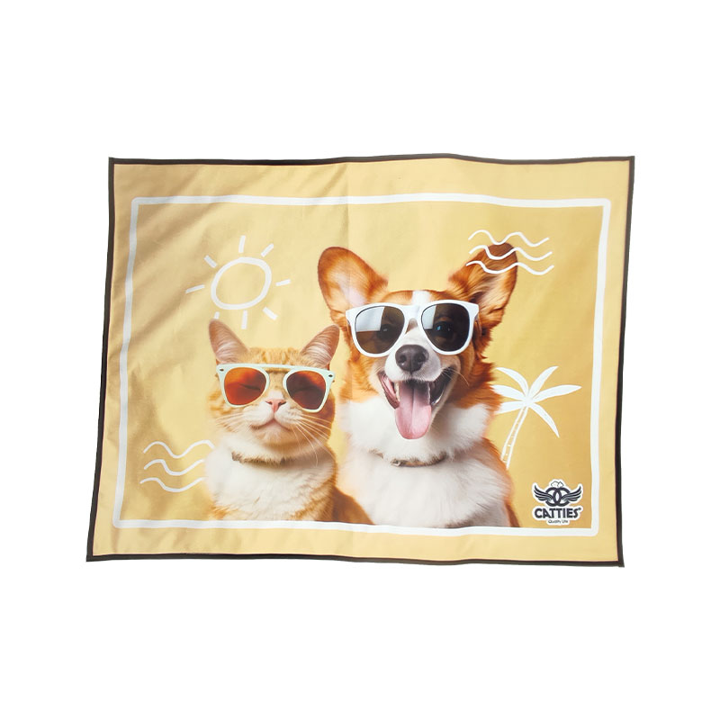طراحی شاد و دوستداشتنی: طرح فانتزی و تابستانی گربه و سگ بامزهای که عینک آفتابی زدهاند، فضایی شاد و پرانرژی ایجاد میکند و نشان میدهد که شما به جزئیات کوچک هم اهمیت میدهGید.